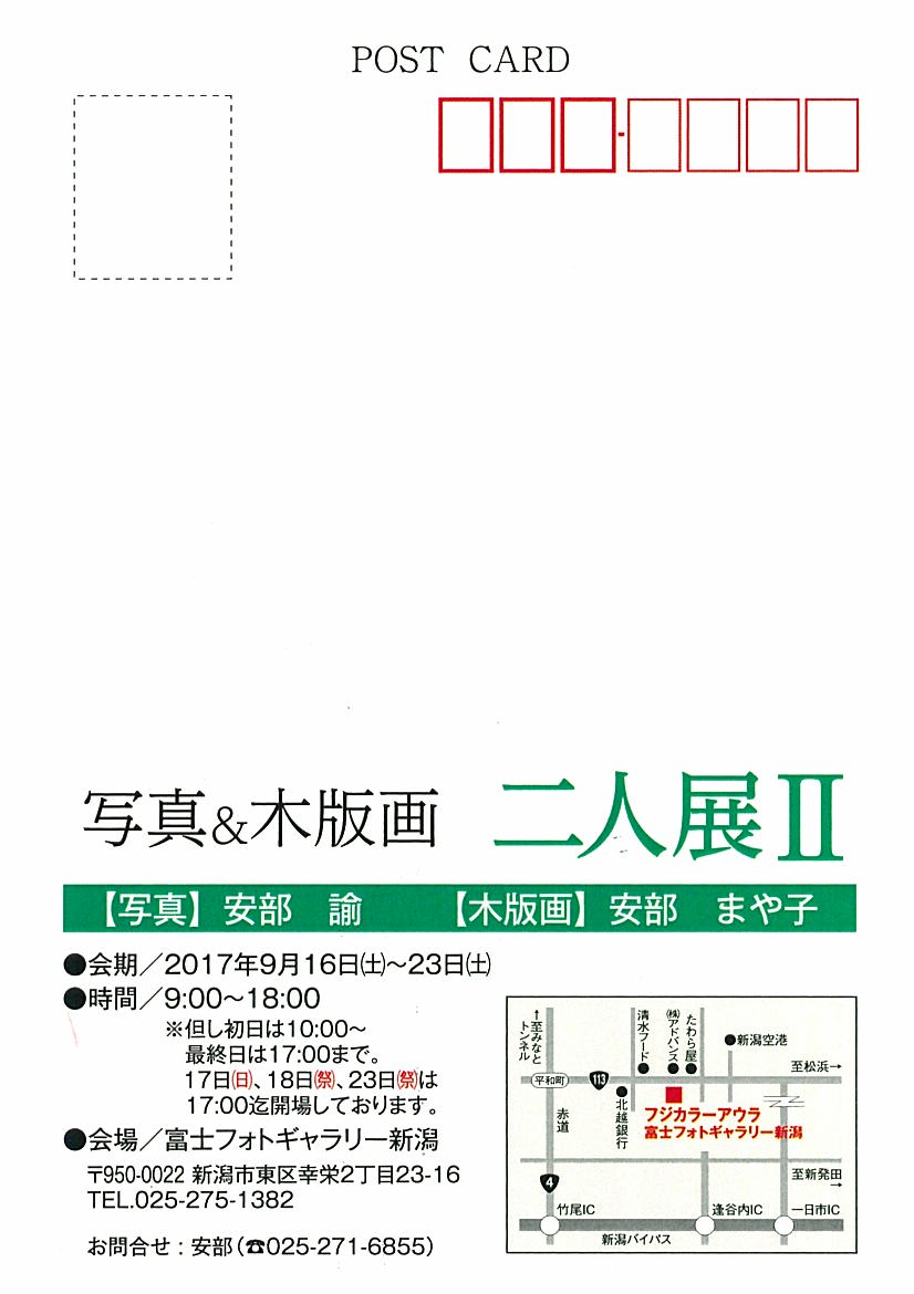 写真&木版画 二人展Ⅱ 2017年9月16日(土)~23日(土)